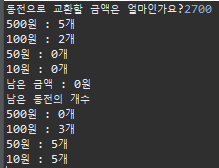 System.out.print("동전으로 교환할 금액은 얼마인가요?");