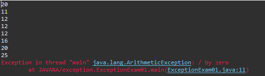 System.out.println(0/0); // 예외 발생