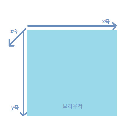 HTML 그래픽 요소에서 사용하는 x, y, z좌표는 다음 그림과 같은 좌표 체계를 따른다.