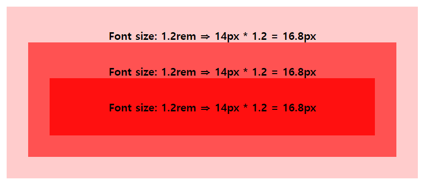 중첩된 자식 요소에 em을 지정하면 모든 자식 요소의 사이즈에 영향을 미치기 때문에 주의하여야 한다.