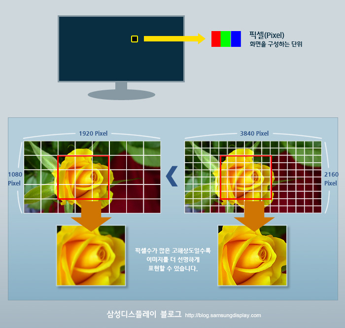 픽셀은 디바이스 해상도(resolution)에 따라 상대적인 크기를 갖는다.
