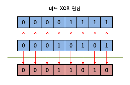 다음 그림은 비트 XOR 연산자(^)의 동작을 나타낸다.