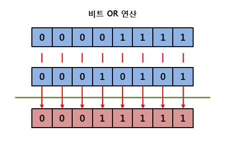 다음 그림은 비트 OR 연산자(|)의 동작을 나타낸다.