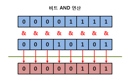 다음 그림은 비트 AND 연산자(&)의 동작을 나타낸다.